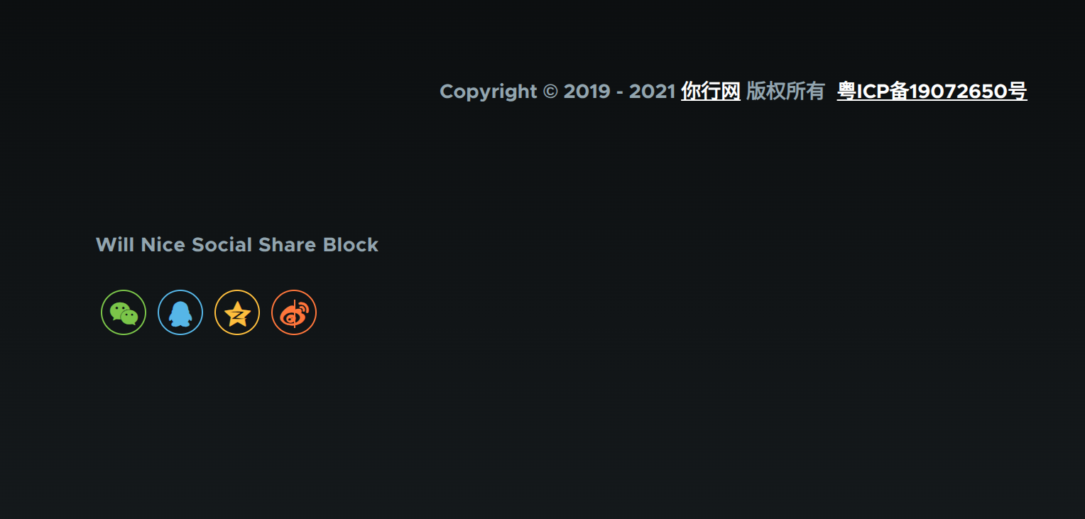 为了方便用户轻松地将喜爱的内容分享到各种社交平台,例如 QQ、QQ空间、微信、微博等,从而扩大内容的覆盖范围和曝光度,这些平台以小图标的形式呈现,用户只需点击按钮即可快速分享链接或内容。模块提供三种使用方式:Will Nice Social Share Block(社交分享模块)、视图全局区域(全局:Will Nice Social Share)和模板扩展({{ render_wn_social_share() }})。